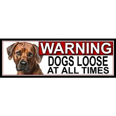 SHAWPRINT Rhodesian Ridgeback WARNING DOGS LOOSE AT ALL TIMES METAL GATE SIGN 266mm x 87m. (936H2)