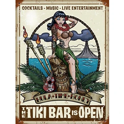 Shawprint TIKI BAR OPEN COCKTAIL METAL TIN PLAQUE ADVERTISING WALL SIGN RETRO ART PUB CLUB MAN CAVE (8" x 6")