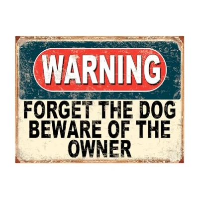 Shawprint Warning Forget The Dog Beware Of Owner Funny Metal Signs Father's Day Home Pub Indoor & Outdoor Garden Bar Garage Vintage Wall Plaque Man Cave Gift Retro (A4)