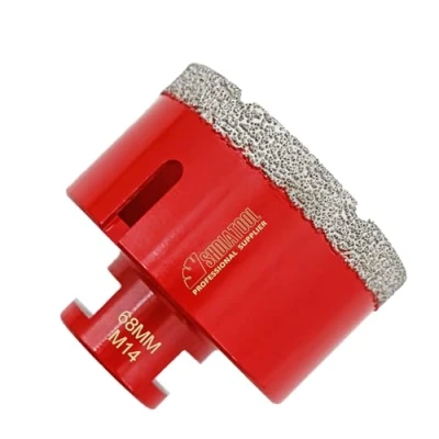 1pc Vacuum Brazed Drill core bits M14 Thread Diameter 68mm Designed for dry drilling in porcelain stoneware, ceramics, natural stone tiles, marble, granite, tiles, hard floor tiles and so on. Wet using can prolong its life High-quality and temperature-resistant diamonds ensure professionally clean and fast drilling. Vacuum brazing is the most effective and precise way of making diamond tools. It makes the industrial diamond grains permanently brazed to the edge of steel core, creating an unbreakable and extremely heat resistant segments Drill bits for angle grinders with universal M14 mount. For the use of all common angle grinders. Recommend 6000 RPM,Max 11000 RPM(Notice: if you want to fit the drill bits on the drill or other machine, you need an adapter, such as SDS Plus , Hex, Round Shank) Vacuum Brazed Diamond Technology:More Heavy Duty and Wear Resistant than electroplated diamond bit,provide very high efficiency,cuts faster,durable and sturdy