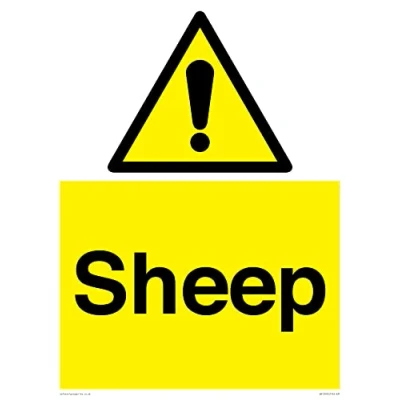 W001 : General Warning This sign is made from plastic semi rigid 1mm self adhesive A3 portrait Sign Text: Sheep