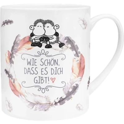 Large Sheepworld cup with the following dimensions: Height 11.5 cm, diameter 9.5 cm, volume: approx. 60 cl Coffee cup is easy to hold and is made from porcelain Dishwasher-safe, comfortable for everyday wear Trendy design in Sheepworld design, with special text message A lovely gift idea for Birthday, Valentine's Day, Easter, Christmas or just because