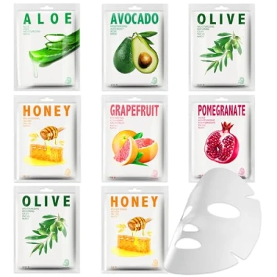 Sheet Mask Pack 8 types, Hydrating & Nourishing Face masks, Daily Care Mask, facial Masks With Hyaluronic Acid for Dehydrated, Dull and Tired Skin, Female skincare