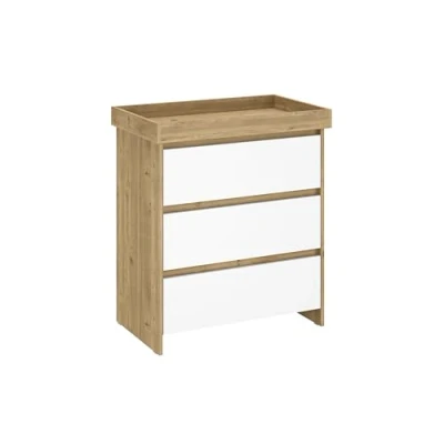 Shefa Kids 880 Baby Changing Unit Cremona Oak White 3 Drawer Dresser (W80 x D50 H92 cm) for Nursery, Nappy & Storage
