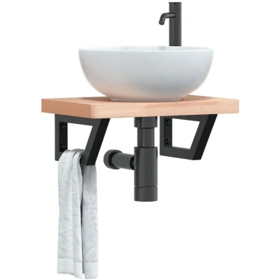 ManoManoGeneral description These trapezium shelf brackets add elegant storage and display space to your home. Made of sturdy steel, they provide stability and longevity, making them ideal for various applications. Technical specifications Colour: Black Material: Steel Overall size: 15 x 30 cm (W x L) Tube size: 3 x 3 cm (W x L) Wall mounting holes distance: 60 mm Tabletop hole distance to the edge: 100 mm on each side Shape: Trapezium Loading capacity: 100 kg Assembly required: Yes Compatibility and accessories Delivery includes 2 shelf brackets only; tabletops and screws are not included. Installation Easy to use with pre-drilled holes for straightforward assembly and wall mounting. Usage Ideal for use as a washbasin support in bathrooms or kitchens. Can also be used as a towel rail, shelf support, wall-mounted desk, or bedside table. Other information