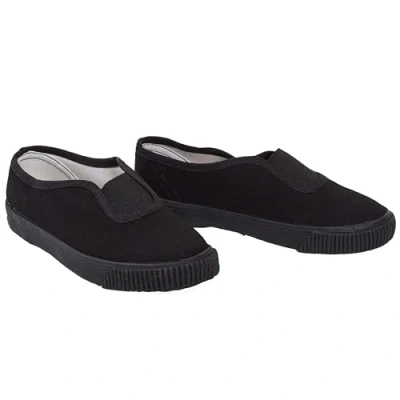 shelikes Girls Boys School PE Pumps Gym Black Trainers Touch Fastening Dance Plimsolls[BLK Gusset 6 UK Child]