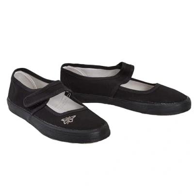 shelikes Girls Boys School PE Pumps Gym Black Trainers Touch Fastening Dance Plimsolls[Butterfly 26 EU / 8 UK Child]