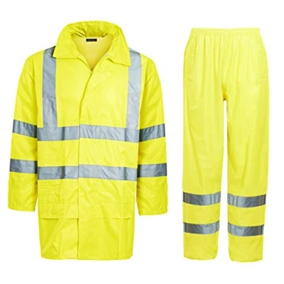 shelikes Hi VIS Viz & Plain Rainsuit 2 Piece Set High Visibility Men Women Hooded Puddle LaShelikes dies Rain Suit Jacket Trousers Waterproof PVC Workwear Wear Size S 4XL (Yellow Vis, L)