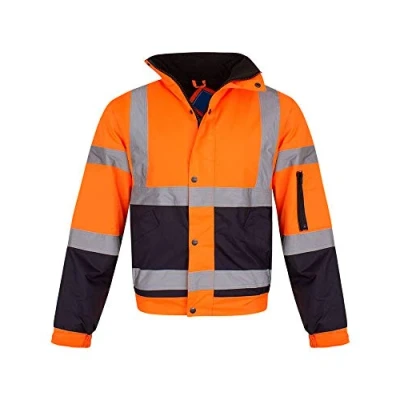 shelikes Hi Vis Viz Visibility Bomber Workwear Security Safety Fluorescent Hooded Padded Waterproof Work Wear Jacket Coat [ORANGE/NAVY M]