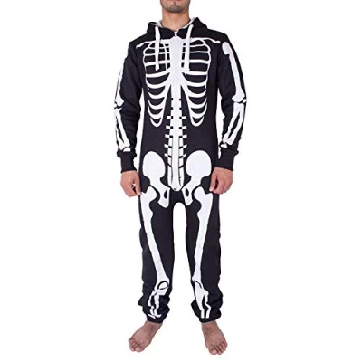 COMFORTABLE MATERIAL: These shelikes unisex skeleton Halloween Jumpsuit are made of cotton and polyester fibers, soft and comfortable to wear, also they are not easy to break down and you can use them for many times. ADD A KIND OF HORRIFIC ATMOSPHERE: This shelikes Unisex Skelton Halloween Jumpsuit are printed with skeleton pattern, which are creepy and can easily add a kind of horrific atmosphere for your Halloween party, costume party, match with the coming festival well. COOL DESIGN: These skelton Jumpsuit look cool and interesting, with skelton design, which are flexible and convenient, and the size is suitable for most mens and womens. ZIPPER DESIGN: The design of a men and women jumpsuit with a zipper makes this Jumpsuit easy to wear. This is equipped with a hood to make you more eye-catching at a party. VARIOUS WEARING OCCASIONS: Men and Women can wear this Jumpsuit during a performance, at a halloween, christmas, birthday party. It can also be worn as a daily pyjama.