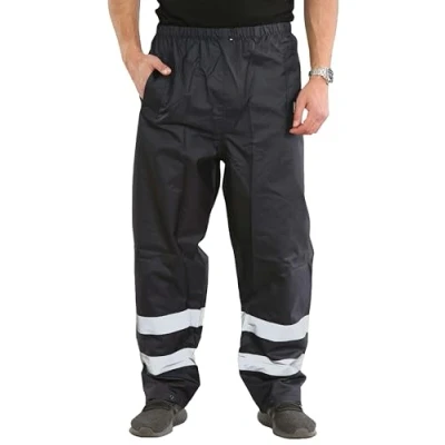 shelikes Mens Hi Vis Safety Waterproof Rain Over Trouser Work High Viz Visibility Pants_Navy_2XL