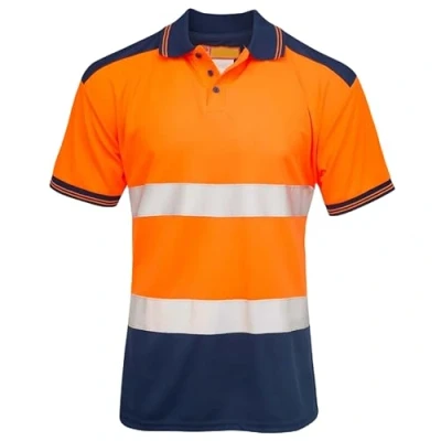 shelikes Mens Hi Vis VIZ Visibility Polo Contrast 2 Two Tone Workwear Tshirt Tee Top [Orange CPK M]