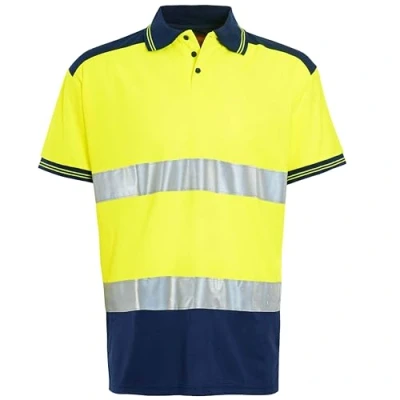 shelikes Mens Hi Vis VIZ Visibility Polo Contrast 2 Two Tone Workwear Tshirt Tee Top [Yellow CPK 3XL]