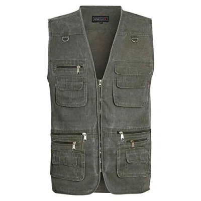 shelikes Mens Multi Pocket Vest Jacket Outdoor Fishing Camping Waistcoat Travelling Hiking Gilet[OLIVE,