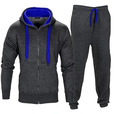 shelikes NEW MENS CONTRAST Cord HOODED TRACKSUIT SET ZIP TOP SWEATSHIRT GYM JOGGING BOTTOMS Black Red 2XL (50% Cotton 50% Polyester)