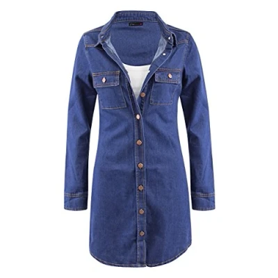 shelikes Womens Casual Cotton Button Down Vintage Long Sleeve Denim Jean Shirt Dress Blue UK8