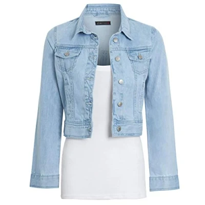 shelikes Womens Denim Jacket Crop Style Long Sleeve Button Up Slim Fit Vintage Jean For Ladies Girls