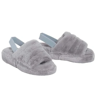 shelikes Womens Sliders Ladies Fluffy Faux Fur Peep Toe Warm Winter Slipper