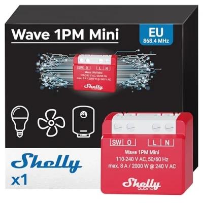 Shelly Wave 1PM Mini 1 channel Smart Z Switch with Power Metering, 8A, Light and Curtain remote control, Hub required, Low consumption, Android app, SmartStart setup