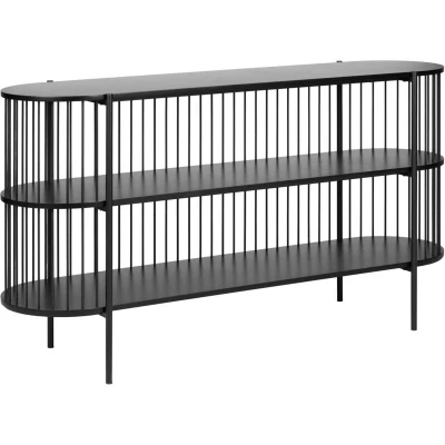 General description This modern Bastone-style cabinet features a sleek black design and is equipped with two spacious shelves, making it ideal for storing books, decorative items, or everyday essentials. Crafted from MDF and supported by a sturdy metal frame, this shelving unit combines practicality with contemporary aesthetics, enhancing any living room decor. Technical specifications Product Type: Bookshelf Style: Modern General Color: Black Main Material: Iron Additional Material: MDF Number of Shelves: 2 Finish: Powder Coated Dimensions: Depth: 44 cm, Width: 149 cm, Height: 80 cm Weight: 20 kg Shelf Weight Capacity: 5 kg Top Weight Capacity: 20 kg Installation Full assembly required Estimated assembly time: 20-40 minutes Usage Open shelves for easy access Perfect for decorative and functional storage Stylish accent piece for home decor Other information Maintenance tips: Clean iron with a mild cleaner and soft cloth; avoid abrasive cleaners to prevent scratches. For copper or