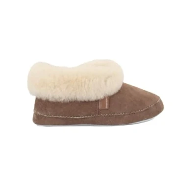 Superb Quality Merino Sheepskin Crafted In An Chestnut (Brown) Colour Suede Finish With Contrasting Beige Wool Central Overlocked Seam Detail With An Additional Fabric Binding Around Upper For Greater Durability 100% Genuine Sheepskin Suede Upper and 100% Sheepskin Wool Lining Non-Slip Textured Durable Leather Suede Sole and Simple Slip On Style They keep the warmth when it is cold and feels cool when it is hot. The materials are naturally antibacterial. The feeling and comfort that the materials give beat everything else.