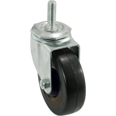 4 inch diameter black soft rubber wheel with threaded stem 1/2 inch x 1-1/2 inch threaded stem 200-lb load capacity Soft rubber wheels for quiet operation over smooth, hard surfaces A great choice when quiet mobility and floor protection are major considerations, Weight: 1.73 pounds, Manufacturer: Shepherd Hardware