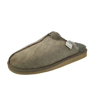 Shepherd of Sweden Hugo Sheepskin Slippers Men 100% Real Slip In Comfort Soft and Warm Stone 11.5 UK