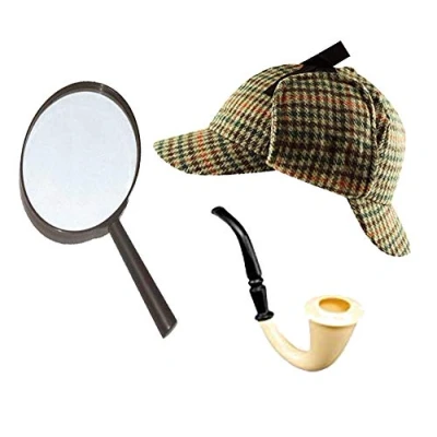 COMPLETE DETECTIVE COSTUME SET: This three-piece detective kit contains a traditional deerstalker cap, a high-quality magnifying glass, and a Victorian-style pipe, making it the ideal accessories set for detective role-play. Whether you are dressing up for World Book Week, Halloween, or a themed party, this set will instantly transform you into the legendary Sherlock Holmes! QUALITY, SOFT, COMFORTABLE & LIGHTWEIGHT: This detective hat is made of cotton, making it breathable, lightweight, and comfortable to wear for extended periods of time. The silky texture offers a comfortable fit, and the classic herringbone pattern adds authenticity to your detective style. FUNCTIONAL-LOOKING COSTUME PROP: Designed to complete your detective or investigator look, this magnifying glass is a costume accessory with a realistic appearance. While not intended for actual magnification or professional use, it adds an authentic touch to your outfit. Made from standard materials, it’s ideal for themed parties, role play, or as part of a fun costume ensemble. IDEAL FOR MULTIPLE OCCASIONS & ROLE-PLAY EVENTS: This Sherlock Holmes fancy dress set is ideal for World Book Day, themed parties, cosplay events, school plays, Halloween, or simply having fun. It's an excellent opportunity to enter the world of detective fiction and bring a classic character to life! GRASSVILLAGE QUALITY – BUILT FOR DRESS-UP FUN: This detective costume set is designed with care for a realistic look and reliable wear. Great for parties, school events, and cosplay, it’s a fun and timeless choice for any mystery lover., Manufacturer: GrassVillageTM