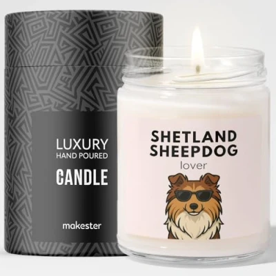 Shetland Sheepdog Gifts Luxury Soy Wax Candle Vanilla, Jasmine, Sugared Almond Dogs in Shades Makester