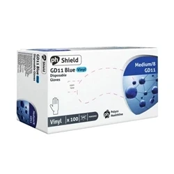 SHIELD GD11 Powdered Vinyl Gloves Blue, Medium, Pack of 100