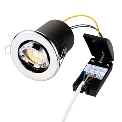 Shield Plus Modern Chrome Fire Rated GU10 Dimmable Adjustable Tilt Recessed Ceiling Downlight/Spotlight Ideal for Bedrooms Lounge Kitchen etc.