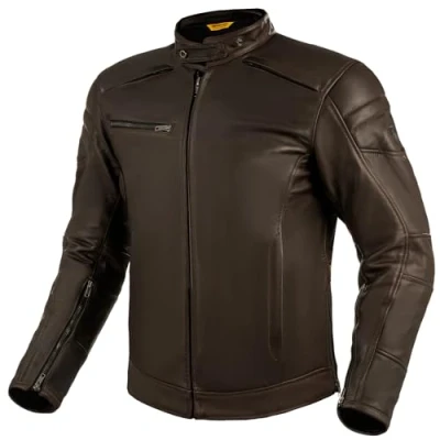 PREMIUM LEATHER SAFETY WITH VINTAGE STYLE – A+ grade leather and foam-padded panels on shoulders and back deliver powerful abrasion resistance and comfort, giving this motorcycle jacket a timeless look with modern protection. DOUBLE-REINFORCED STRENGTH FOR CONFIDENT RIDING – Safe seams reinforce critical zones, creating a durable leather biker jacket built for commuting, touring and weekend rides with dependable protection and long-lasting performance. ENHANCED AIRFLOW WITH EXPANDED VENTILATION – H3 Heat Free front zipper and chest and forearm vent panels create strong cooling airflow, making this leather motorcycle jacket ideal for warm-weather and summer riding comfort. RELAXED COMFORT THAT MOVES WITH YOU – A regular fit, expansion gussets and adjustable collar and hips give freedom and stability, making this lightweight biker jacket ideal for long-distance riding and all-day wear. SMART STORAGE FOR EVERYDAY RIDING – A waterproof dry pocket and a rear glove pocket add convenience and function, giving this leather motorcycle jacket practical utility for commuting or extended motorbike trips.