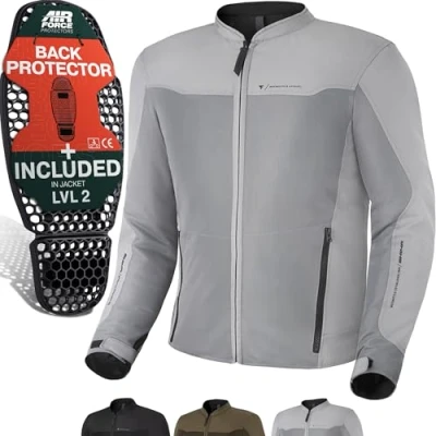 SHIMA OpenAir Motorbike Jackets for Men AirForce Back Protector Armour Riding Motorcycle Jacket Summer Mesh Bikers Ventilated Lightweight Armoured Textile (Mens, Grey, M)