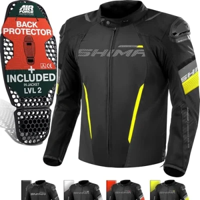 SHIMA SOLID Motorbike Jackets for Men AIRFORCE Back Protector Armour Riding Motorcycle Jacket Summer Winter Bikers Waterproof Lightweight Armoured Bike Textile Motorcycles (Mens, Fluo, Regular, 4XL)