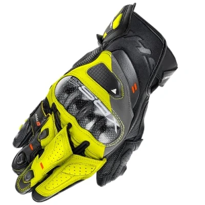 UNMATCHED HAND SAFETY - Experience ultimate defense with natural goat and kangaroo leather, reinforced for motorbike racing. Carbon-reinforced protectors and ArmorPlus foam enhance this motorbike glove's safety on tracks. BREATHABLE & COOL - Stay cool with strategically placed perforations for optimal airflow. Ideal motorcycle gear for heated racing or motocross action, keeping your hands dry during summer rides. PREMIUM RIDING COMFORT - Master every curve with these motorbike gloves featuring elastic panels and pre-curved finger construction. Floating Knuckle technology boosts grip and movement for precise motorsport riding. TOUCHSCREEN COMPATIBLE - Seamless touchscreen functionality ensures you stay connected. Perfect for navigating on track days or checking devices without distractions, enhancing your motorbike accessories arsenal. EASY TO WEAR - Slip into these racing gloves quickly with a puller strap and secure with a V-Lock Pro fastener. Essential for riders who value convenience and comfort in their motorbike clothing.