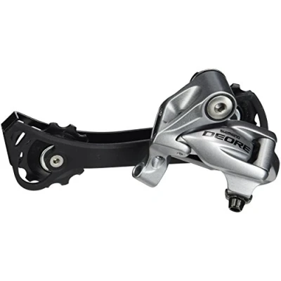 Wide link Shadow design Dyna-Sys 10-speed top normal Deore rear derailleur Double servo-panta mechanism for smooth light action shifting Single tension spring prevents contact with the chainstay resulting in a silent ride Alloy and steel construction leads to lower weight without compromising strength and durability Wide link design increases rigidity and service life