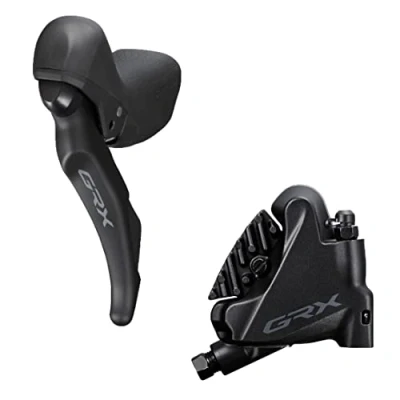 Shimano GRX ST RX600 2 speed STI bled with BR RX400 flat mount calliper, left rear