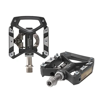 Key Features: XT trekking SPDs are designed for recreational riders who commute and tourThis XT trekking pedal combines SPD mechanism on one side and a stable platform pedal body and pins on the other, you can ride with cleats or normal shoesSPD has low profile platform height with large platform contact area for excellent support and stabilityLightweight and high performance using a forged alloy body and chrome-moly axle8 mm hex wrench mounting systemSealed cartridge axle system for reliability and simplified low maintenanceEasy entry system with tension adjustment provides plenty of support and holds the cleat firmly in placeBuilt in reflectorsIncludes SM-SH56 multi release cleatWeight: 392 grams per pair.