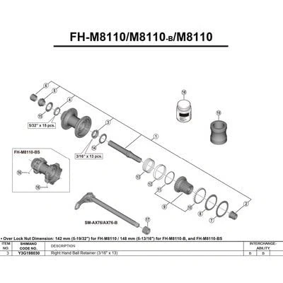 Shimano Spares FH-M8110 right hand ball retainer, 3/16 x 13 mm