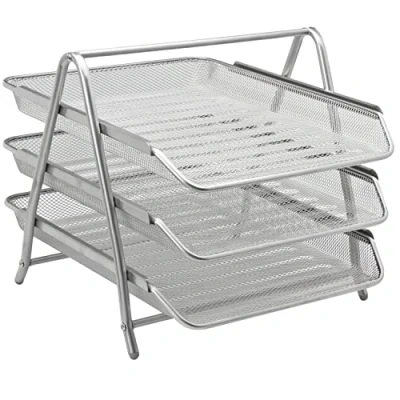 Shine 3 Tier Executive Mesh filing Trays Silver Color No risers required 218L x 357W 335H MM for Office Home School