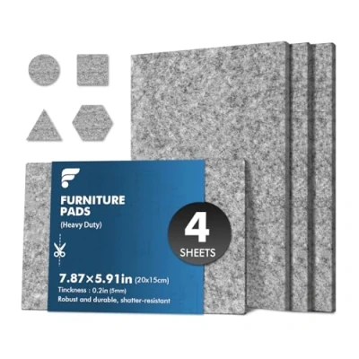 Protect Your Floors – These 5mm thick felt pads are made from advanced materials, making them stronger than traditional felt pads. They provide long-lasting protection and reduce scratches, scuffs, and noise caused by moving furniture. Cut to Any Size & Shape – Our versatile chair pads floor protectors can be easily cut to fit your furniture legs perfectly, whether they are round, square, or uniquely shaped. Extra-Large 20 × 15 cm Felt Pads – Protect your floors with our generously sized floor protectors for furniture legs, designed to cover a larger area and provide maximum protection for hardwood, laminate, or tile floors. Strong Self-Adhesive Backing – The felt furniture pads easy to apply and stays firmly in place on any furniture surface. Our high-strength adhesive ensures the pads won’t slip or peel off, even under heavy furniture. Universal & Multi-Purpose Use – Our chair leg floor protectors suitable for chairs, sofas, tables, cabinets, or any home furniture. Protect your floors, prolong furniture life, and enjoy a quiet, scratch-free home environment.