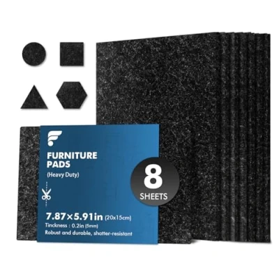 Protect Your Floors – These 5mm thick felt pads are made from advanced materials, making them stronger than traditional felt pads. They provide long-lasting protection and reduce scratches, scuffs, and noise caused by moving furniture. Cut to Any Size & Shape – Our versatile chair pads floor protectors can be easily cut to fit your furniture legs perfectly, whether they are round, square, or uniquely shaped. Extra-Large 20 × 15 cm Felt Pads – Protect your floors with our generously sized floor protectors for furniture legs, designed to cover a larger area and provide maximum protection for hardwood, laminate, or tile floors. Strong Self-Adhesive Backing – The felt furniture pads easy to apply and stays firmly in place on any furniture surface. Our high-strength adhesive ensures the pads won’t slip or peel off, even under heavy furniture. Universal & Multi-Purpose Use – Our chair leg floor protectors suitable for chairs, sofas, tables, cabinets, or any home furniture. Protect your floors, prolong furniture life, and enjoy a quiet, scratch-free home environment.