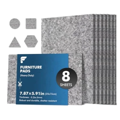shinfly Felt Pads for Furniture Feet 8 Pcs, Sheets with 20x15cm, Extra Thickness Floor Protectors Chair Legs Pads, Grey