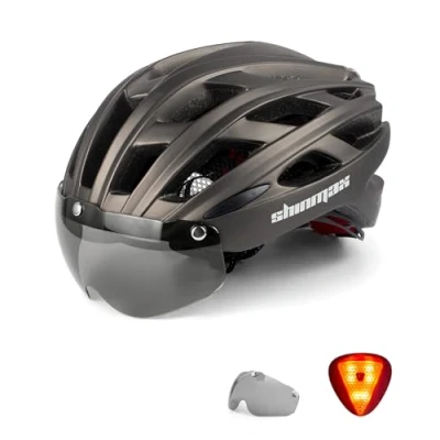 ►【Professional Protection,Save Your Life】High-density imported pc case with superior technology will surely improve safe performance that it can save your life in emergent situation ►【Bike Helmet with Removable Shield Visor】The magnetically fastened visor provides wraparound eye protection can keep eyes out of the wind and sun,and it’s easy to flip up or remove with one hand when appropriate ►【Bike Helmet with LED Light,Safe & Protective】 This cycling helmet with tail light which helps people behind you clearly recognized your direction.Led safety light located on the back of the cycle helmet, with 3 lighting modes - steady, slow flashing and fast flashing; this light will keep you visible and safe from the on-coming traffic ►【Adjustable Sizes】Adult cycle helmet with good head circumference adjustment system. The adjustment belt works perfectly and is well made.with chin pad, one-touch buckle adjustment system, side straps will increase/decrease the size to your liking(57-62 CM / 22.44 -24.41")Bike helmets for adult mens and ladies ►【Half-year Warranty Guarantee】All of our customers can get the warranty immediately if there are any quality problems or dissatisfaction for any reason. You have no risk to try