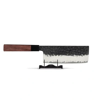 MegacookingworldThe Shinrai Kurayami Damascus Nakiri Knife 18 cm is unique, versatile, and a must-have for any true home chef's knife collection. The nakiri knife is known as the traditional Japanese vegetable knife. Thanks to its super-thin, rectangular blade, this nakiri knife is perfect for slicing vegetables with razor-thin edges. Kurayami Kurayami means "darkness" in Japanese and reflects the intense, dark hues that characterize the knives. This unique color scheme gives the set a refined and mysterious look, which not only performs impressively but also makes a stylish addition to your kitchen. Unique features and specifications * 3-layer VG-10 Damascus steel: This Shinrai Nakiri knife is distinguished by its three layers of forged steel. Both sides of the blade are made of three layers of the finest VG-10 Damascus steel. These three layers consist of a hard inner layer and two softer outer layers. This ensures long-lasting sharpness and precision, while also providing the blades with better protection against wear. * Black Bison Horn: The handle of this exclusive nakiri knife is crafted from black bison horn and premium redwood, a combination that exudes luxury and craftsmanship. This handcrafted knife offers a comfortable grip and a unique design, ideal for discerning chefs who settle for only the very best. An indispensable masterpiece for anyone seeking a high-quality kitchen knife with style and functionality. * Razor-sharp masterpiece : Shinrai's dedication to craftsmanship results in a nakiri knife that's more than just sharp—it's razor-sharp! Cut with precision, effortlessly, and with a finesse only a true home chef can appreciate. Thanks to its extremely high hardness of 61 HRC, this nakiri knife can be sharpened to a razor-sharp 15-degree angle. * Balance and ergonomics : This nakiri knife fits perfectly in the hand thanks to its balanced design. The handle is very comfortable for both left- and right-handed users. * Durability and quality : Made of high-quality Damascus steel. The durability of Damascus steel lies in its strength, wear resistance, and long lifespan. The three layers of forged steel make maintenance easier. A lifelong investment in your culinary journey. * A beautiful gift : This nakiri knife comes in a beautiful gift box. This not only ensures it's protected on its way to you, but also puts a smile on your face when you receive it. * Warranty : We are completely confident in the quality of Shinrai kitchen knives. That's why we offer a 5-year warranty against material and manufacturing defects! Maintenance tips and recommendations To keep your nakiri knife in optimal condition, we recommend washing it by hand with mild soap and warm water. As with any good chef's knife, avoid the dishwasher, as aggressive cleaning can quickly shorten its lifespan. After washing, be sure to dry it thoroughly and immediately to prevent stains. Sharpen regularly Use a whetstone, sharpening rod, or honing steel regularly. This will effortlessly maintain the sharpness and precision of your knife, extend its lifespan, and ensure you continue to enjoy an unparalleled cutting experience. Storage Properly storing your knives in a knife block is essential for not only ensuring safety but also extending their lifespan. Storing them this way prevents damage to the cutting edges and ensures they're always within reach when you need them. Correct substrate High-quality cutting boards are essential for keeping your knives sharp and extending their lifespan. They provide a soft, non-abrasive surface that prevents knives from dulling quickly and reduces impact on the blade while cutting. Using high-quality cutting boards is an investment in both the performance and durability of your knives. Ready to make your culinary dreams come true? Order your new Nakiri knife now!