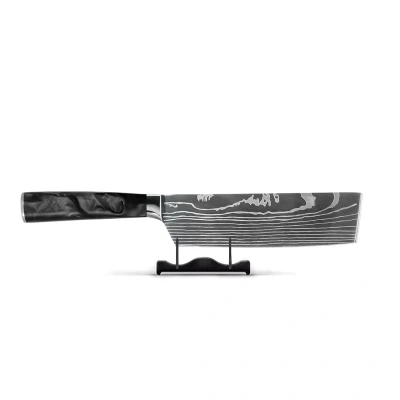 Shinrai Knives Damascus Print Onyx Epoxy Nakiri knife 18 cm