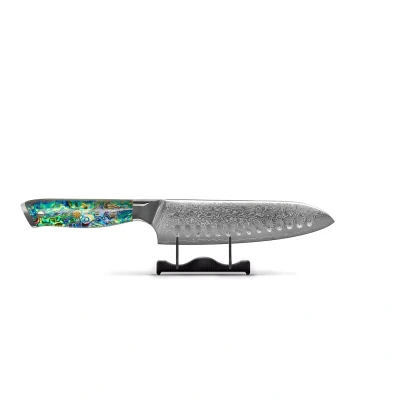 Shinrai Knives Mother of Pearl Jewels Damascus Santoku knife 18 cm