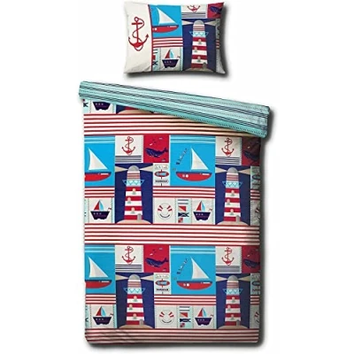 Ships & Boats Toddler Junior Bed Blue Reversible Duvet Cover Pillowcase Set 120cm x 150cm
