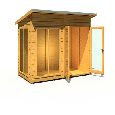 General description The stylish Lela Summerhouse is a valuable addition to your outdoor living space, perfect for summer dining and relaxing. With an eaves height of around 7 ft, the Lela provides a comfortable and spacious interior. The joinery made double doors are fitted with a mortice lock, and the fixed windows are glazed with acrylic for safety. Technical specifications Dimensions: L125.8 x W238 x H229.9 cm Footprint (nearest ft): 8x4 Footprint (actual): 7'9" x 4'2" Internal Width: 2312 mm Internal Depth: 1190 mm External Footprint: L1258 x W2380 mm Extreme Depth: 1621 mm Extreme Width: 2524 mm Internal Ridge Height: 2175 mm External Ridge Height: 2299 mm Internal Eaves Height: 1935 mm External Eaves Height: 1981 mm Weight: 233 kg Installation To ensure proper assembly, a flat and level base is required. Grass, soil, or gravel are not suitable as they may shift under the weight of the building. The assembly service will contact you to confirm the suitability of your base before
