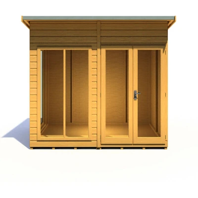 General description The stylish Lela Summerhouse is a valuable addition to your outdoor living space, perfect for summer dining and relaxing. With an eaves height of around 7 ft, the Lela provides a comfortable and spacious interior. The joinery made double doors are fitted with a mortice lock, ensuring security, while the fixed windows are made with acrylic glazing for safety. Technical specifications Dimensions: L185.8 x W238 x H228.4 cm Footprint (nearest ft): 8x6 Footprint (actual): 7'9" x 6'2" Internal Width: 2312 mm Internal Depth: 1790 mm External Footprint: L1858 mm x W2380 mm Extreme Depth: 2228 mm Extreme Width: 2524 mm Internal Ridge Height: 2175 mm External Ridge Height: 2284 mm Internal Eaves Height: 1935 mm External Eaves Height: 1981 mm Weight: 288 kg Installation A flat and level base is required for assembly. Grass, soil, or gravel bases are not sufficient as they may shift under the weight of the building. Usage Ideal for outdoor dining and relaxation. Enhances your